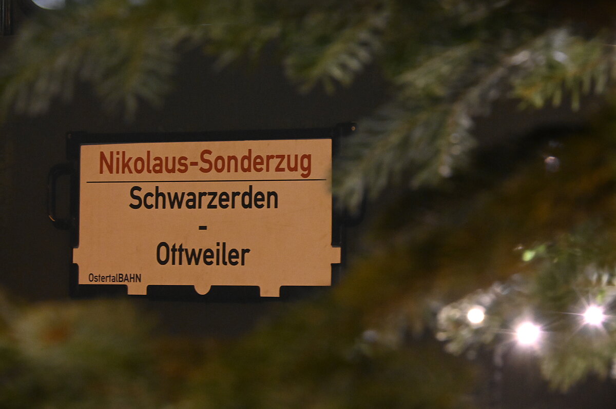 Sonntag, 7. Dezember (2. Advent) | Fahrt von Ottweiler nach Schwarzerden und zurück ohne Aufenthalt unterwegs. Der Zug startet in Ottweiler so, dass der Nikolaus in der Dämmerung bei Fackelschein auf freier Strecke zum Zug kommt. Fahrpreise: